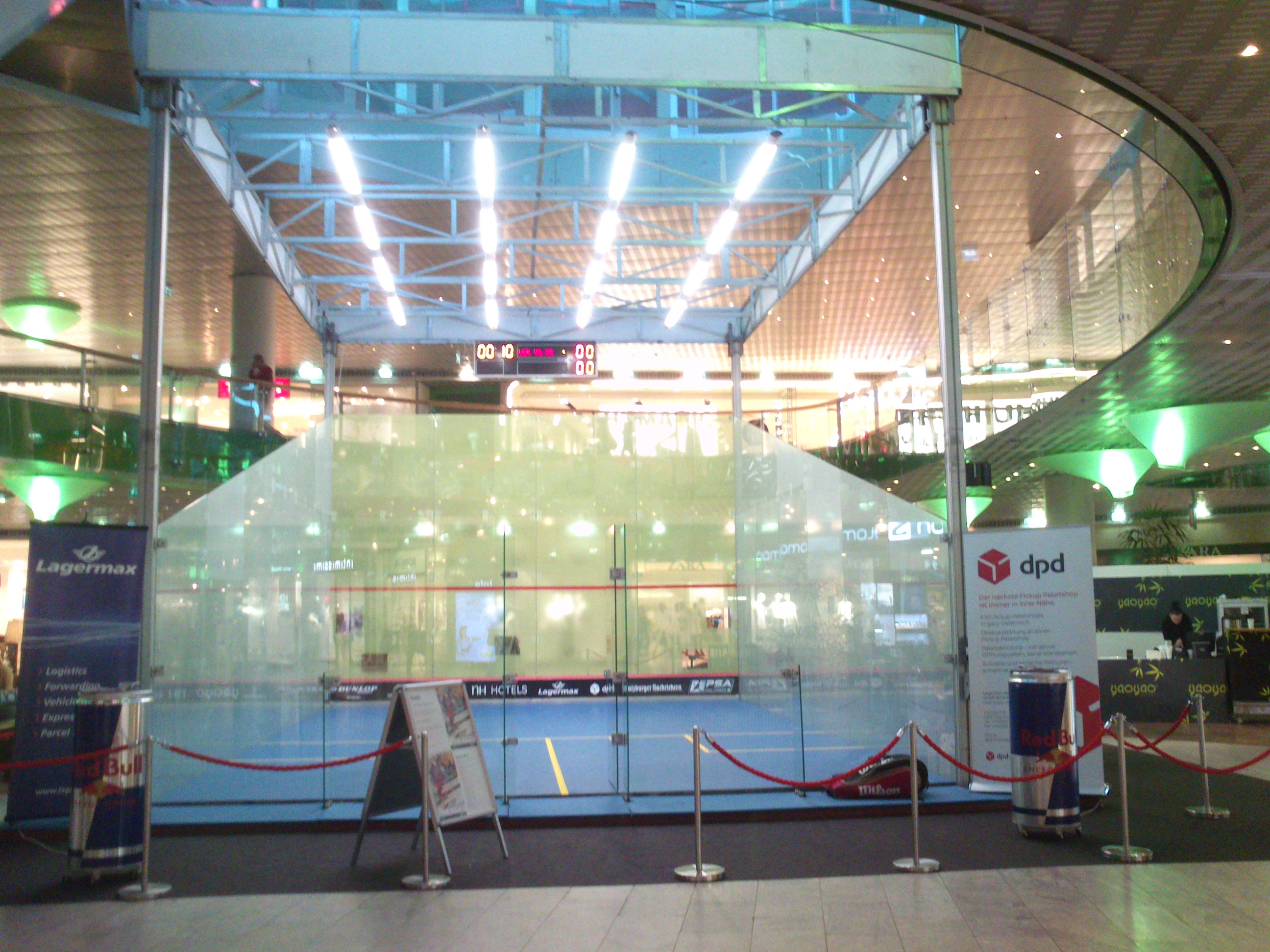 Der erste Tag der Austrian Squash Challenge ist vorbei. Es war ein sehr erfolgreicher und teilweise ereignisreicher Tag. Anfangs gab es noch einige Kleinigkeiten und optische Details am Court zum Anpassen, aber schon sehr bald fanden die ersten EUROPARK-Besucher den Weg ab 9 Uhr zum Glascourt am Theaterplatz.