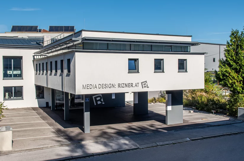 Das Bürogebäude liegt nur 10 Minuten vom Salzburger Hauptbahnhof entfernt und ist somit äußerst klimafreundlich mit den öffentlichen Verkehrsmitteln zu erreichen. Auch im Punkto Nachhaltigkeit legt Rizner Media Design einiges vor. Das Gebäude ist mit einer hauseigenen 32 kw-Photovoltaik-Anlage ausgestattet und produziert somit den Großteil der benötigten Energie selbst. Einige Mitarbeiter haben daher bereits auf Elektroautos umgesattelt.